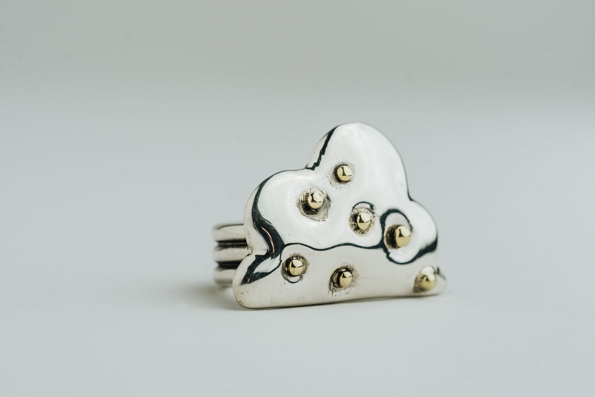Sterling silver clouds, rainbows and brass stars make up this whimsical ring for the dreamer in you.